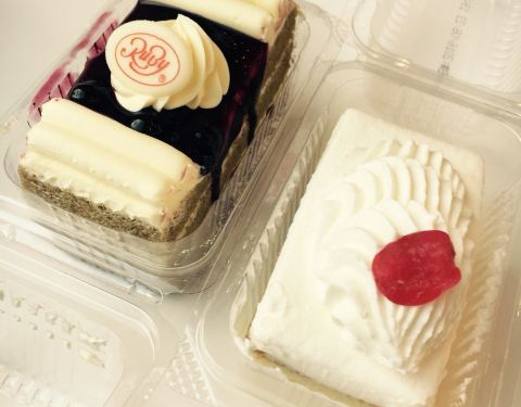因为口味变化的原因,最近还真的蛮少吃红宝石的,路过买一点。蓝莓芝士,原味芝士15一个,奶油小方15一盒有两块,味道还不错。