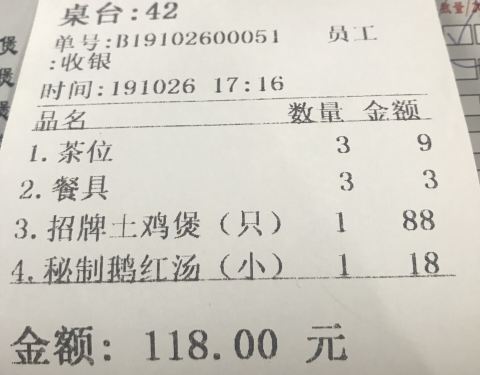 【招牌土鸡煲】上来一大煲,鸡肉结实,鸡味浓郁,非常嫩滑入味。买单118元,人均消费约40元