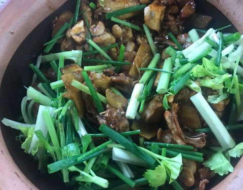 昌记土鸡店位于花都区凤凰南路1号,朋友带路过来吃午饭。 这是一家大排档,是一个用钢架搭建起的大棚,环境简陋,有大厅和房间。 #秘制鹅红汤#18元 上来很大的一盆,鹅红很多,很新鲜。 #秘制杂腩煲#68元 用瓦煲...