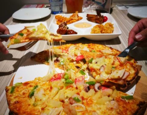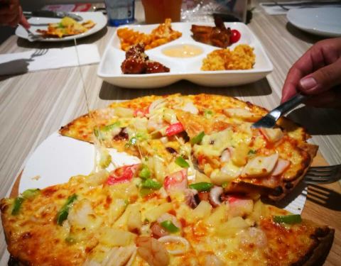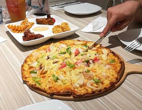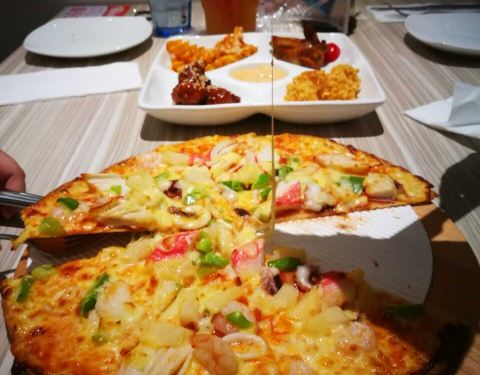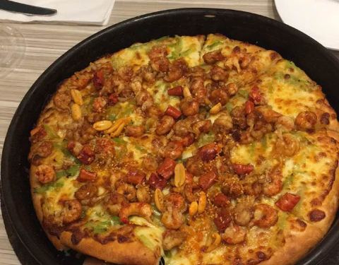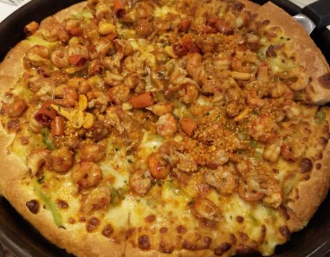 新上市的小龙虾披萨味道好极了,饮品也是特惠的,