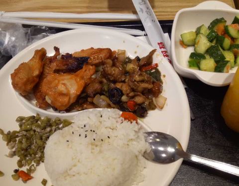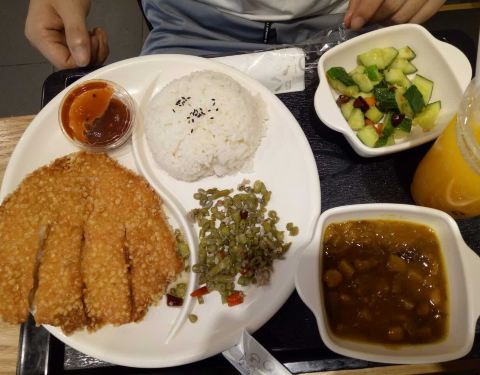 味道还可以,特别是现炸的鸡排非常好吃,搭配的黄瓜也可口,特别脆。