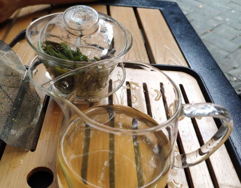 在其他网站抢购到蜀王府下午茶套餐,打电话询问国庆期间可以使用,10月1号下午就过来了。 [环境]古香古色,一看内部结构就知道很有些年头。木头家具都是老木头,工艺也很精致。中间一个大庭院,还有一个戏台。 [服务]美女老板亲自接待的,还给我们热情介绍了很多情况。 选的毛尖,平时是68一位,加杯20元一个。不过套餐里还有小吃,小吃是闻酥园的。这里其实主要是经营餐饮的,下次想来尝尝菜品。
