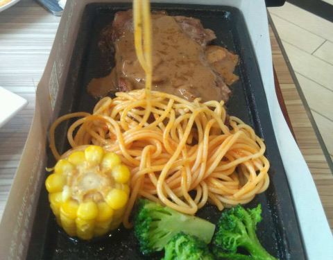 每次来都吃披萨意面,今天试了饭和牛排,牛排感觉一般,面和饭还不错