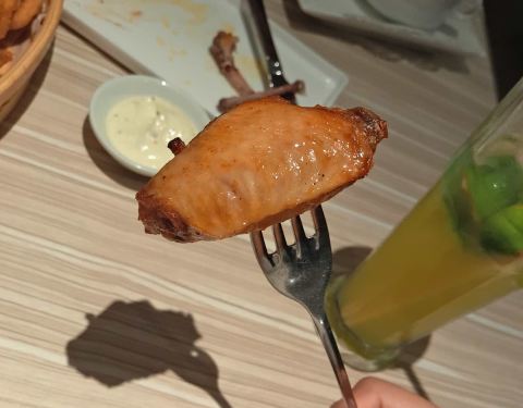 环境不错,服务员态度真好,两个人点了两个午餐套装外加一点鸡块,居然难得地光盘了。推荐饮品的“竹蔗茅根饮”(甜)和“蜜汁热辣鸡”(酸甜辣)。另,“香烤劲牛披萨”的边,烤得挺脆,味道不错。