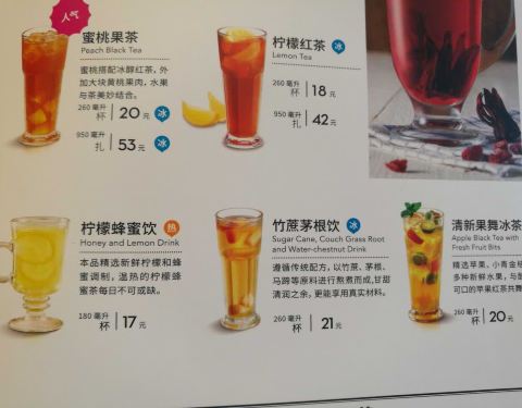 - 推荐饮品的“竹蔗茅根饮”(甜)和“蜜汁热辣鸡”(酸甜辣)