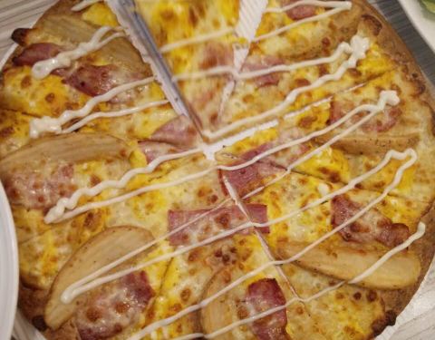 味道不错,尝了新品麻辣小龙虾披萨,味道蛮奇怪的,哈哈