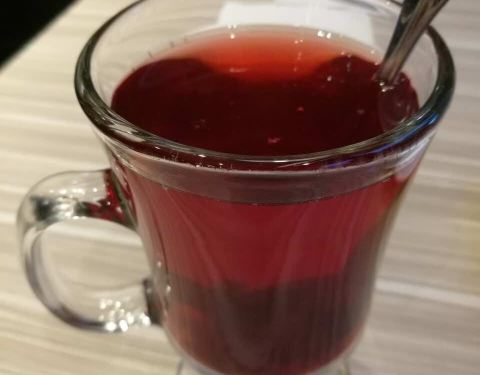 推荐饮品的“竹蔗茅根饮”(甜)和“蜜汁热辣鸡”(酸甜辣)