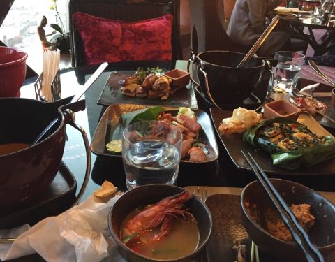 餐厅位于酒店的50层,可一览城市景致。这里出品不仅颜值高,口味也极其正宗。海鲜拼盘外形很是吸引眼球,鲜嫩味美,搭配红咖喱酱,口感令人惊喜。