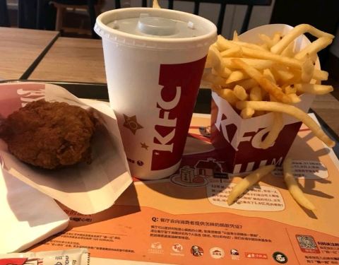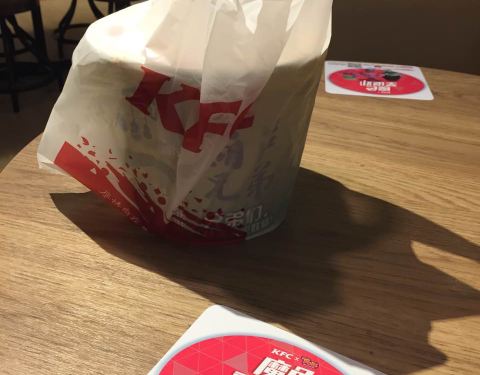 这家肯德基在水心农贸市场这边,中午来的时候店里人倒是不多。 找了旁边有充电的位置,在app上自助点餐,叫号叫到了就去拿。点了吃的,在里面吹着空调蹭着网络,不过虽说人不算太多,也没什么小孩子,总归不是特别安静