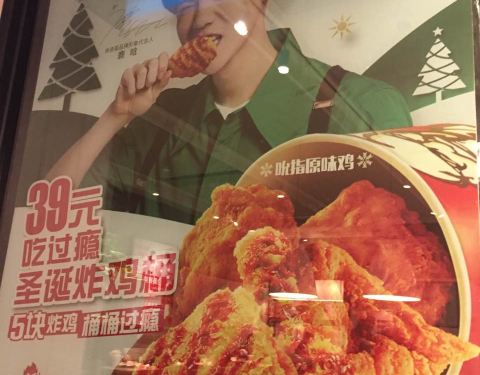 肯德基环境变化大,很不错,绿植可以,小鹿广告的圣诞炸桶吃过瘾