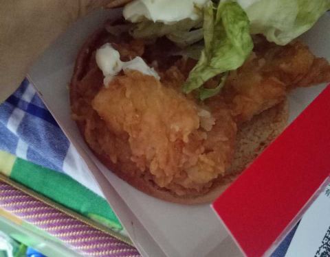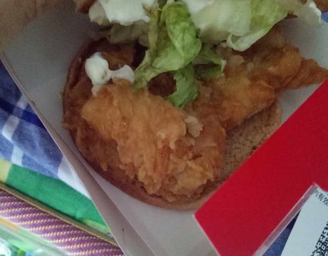 - 菜叶都烂了,更可气的是香辣鸡腿堡的表面居然有手撕猪肉堡的酱,我甚至怀疑工作人员洗手消毒吗