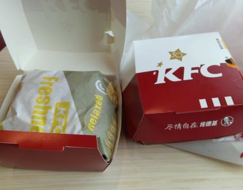 两个汉堡十八元,且口味可调,还是比较划算的。肯德基汉堡,比M家的更有鲜鸡肉味!