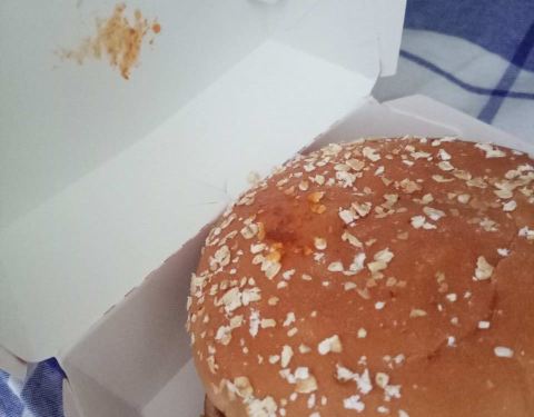 菜叶都烂了,更可气的是香辣鸡腿堡的表面居然有手撕猪肉堡的酱,我甚至怀疑工作人员洗手消毒吗