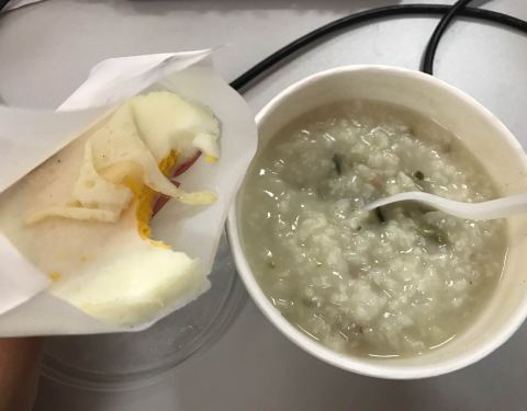 在小区门口,晚上有时候买炸鸡套餐,早上上班路过买早餐,方便快捷。推荐哈。皮蛋瘦肉粥也很有料,一碗粥就很饱啦