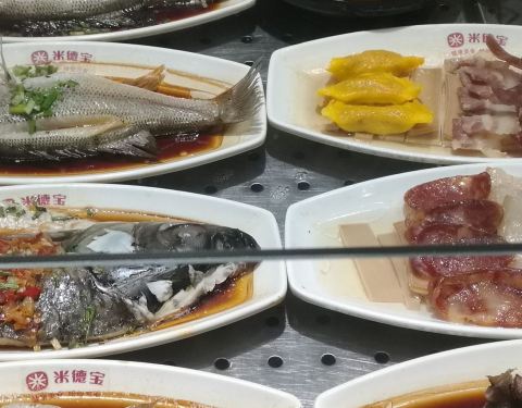 米德宝是一家快餐连锁店,这里面菜品丰富,比较有特点的是这家店里有不少品种的淡水鱼食品,一般是蒸...
