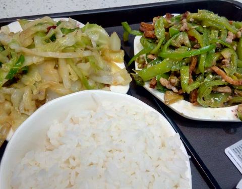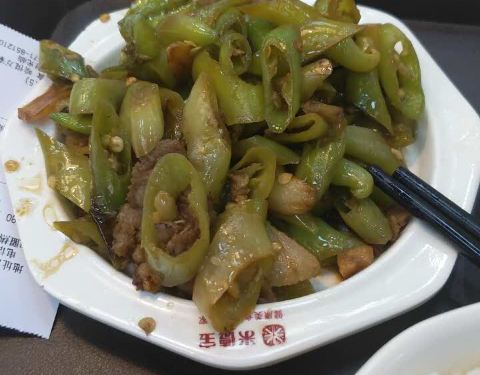今天的饭菜真鹏很好吃,我特别喜欢这个辣椒肉片
