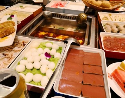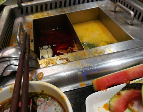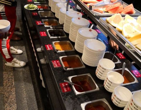 口味真的超级棒 特别是锅底 番茄锅超级鲜美 不沾调料都超好吃 辣牛油果锅吃了胃里不会不舒服 柔和的那种辣 菜品是自取的 都很新鲜 调料种类虽然不多但对我来说想要的都有啦 当时不是周末去的 还等待了很久 说明生意超棒 等待会有免费水果和小吃 会再来的~