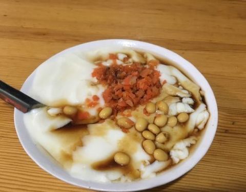 位于小区内一家小店,店面不大但是很干净整洁,主要都是附近的居民来吃,也可以点外卖送上门。豆腐脑稠稠的,就象老酸奶一样,上面的黄豆绵软,好吃!
