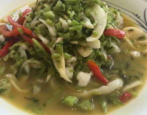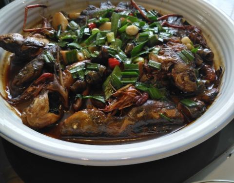从莫干山下来,到了饭点,一路找吃的,最后选择了这家,因为感觉这家店门面很气派,进门后开始点菜,喜欢什么菜就拿一根签,很喜欢这样的点菜模式,很有趣,好像吃自助,点完菜上楼开始用餐,原来二楼别有一番天地,我们人多就用了包厢,菜上得很快,而且味道都很不错,有一道当地的特色菜,味道很赞,而且食材都很新鲜,很满意这家餐馆。