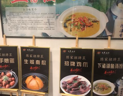 从杭州过来开车不到一小时就到了,交通很便利,城市绿化特别好,饭店对面还有一个好大的免费公园,逛了一个多小时才逛了一半不到。一楼的大厅摆满了一排排待加工的美味佳肴,看上去太诱人了,特别喜庆。2楼装修得...从杭州过来开车不到一小时就到了,交通很便利,城市绿化特别好,饭店对面还有一个好大的免费公园,逛了一个多小时才逛了一半不到。一楼的大厅摆满了一排排待加工的美味佳肴,看上去太诱人了,特别喜庆。2楼装修得很有民国时代的感觉,包厢门都是用一块块木板拼起来的。鱼汤饭很好吃,来自下渚湖的鱼头,还有数不清的河虾和小螃蟹蟹,盛一碗汤配上木桶饭,简直人间美味。雪里蕻炒鱿鱼,鲜美绝伦的搭配,火候刚刚好,鱿鱼肉很嫩,雪里蕻绿油油的吃着好开胃。一品香芋煲,每一片芋头之间都夹着一片猪肉,分量足,吃了好多片芋头,吃起来粉粉的,有种特殊的香味很对我胃口。鸭馄饨,很喜欢这个搭配,馄饨大个,里面有肉有虾米,鸭肉烧得非常酥。陈家第一包,里面的肉馅特别多,太实在了。
