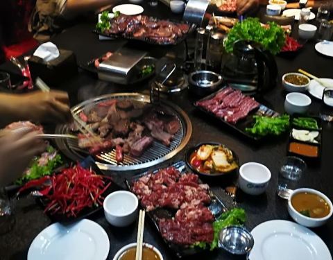 集安-------是个美丽的小城,这里临近朝鲜,很多饮食方式类似,烤肉是最典型的吃法,火红的炭火燃起,隔着篦子生烤肉,是这里的招牌饮食。