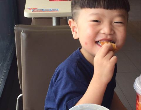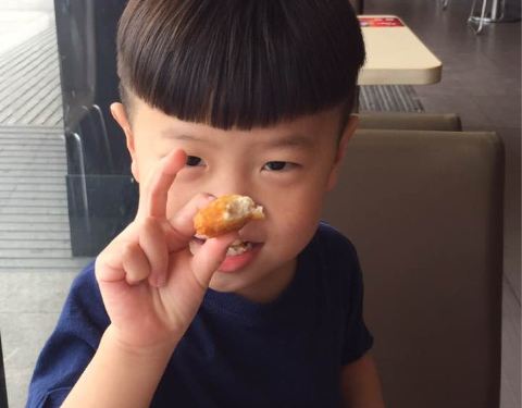 儿子很喜欢吃炸鸡