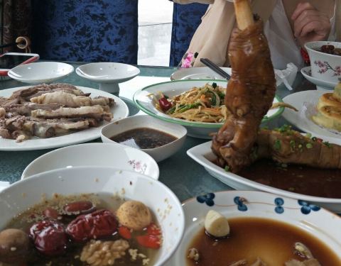 导游推介,人不是太多,卫生一般,从青铜峡108塔回到银川选择这家餐厅,菜味道不错,手抓羊排和刀鱼好吃,手抓葱油饼口味刚刚好,羊蹄味道不喜。