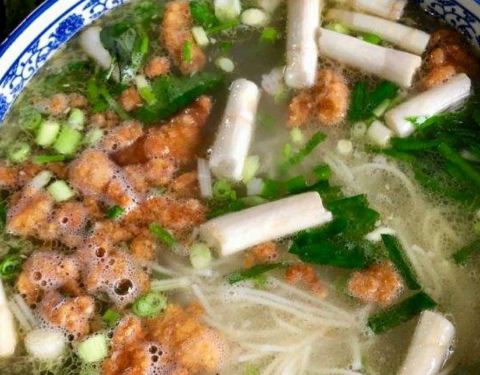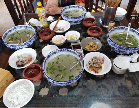 打卡宝兴楼,据说是建水百年老店,环境没得说,来这里当地人很多,炸糯米,三丝烩草芽,汽锅鸡,凉拌米豆腐,当然更不可错过的是----过桥米线!