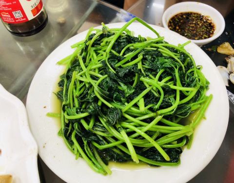 饭店的招牌是活生生的老板本人(真的超搞笑的,前年跟今年去,都一眼认出来,他光着膀子,戴着一条金灿灿的黄金),这家店的味道还是可以的,还有椰子现砍现吃,去游玩完铜鼓岭后可以来这家吃