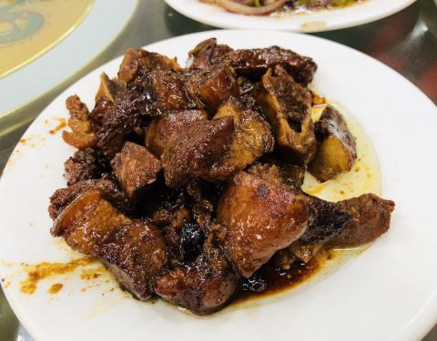 - 点了半只文昌鸡,炒鱿鱼、茄子煲和炒青菜,品尝地道海南菜。到龙楼镇是为了买鞭炮,顺便吃晚饭