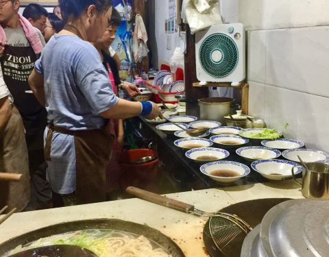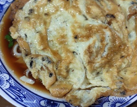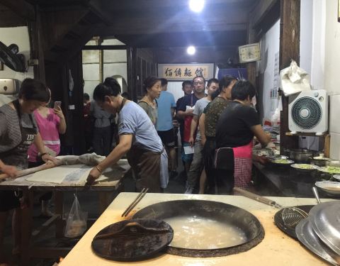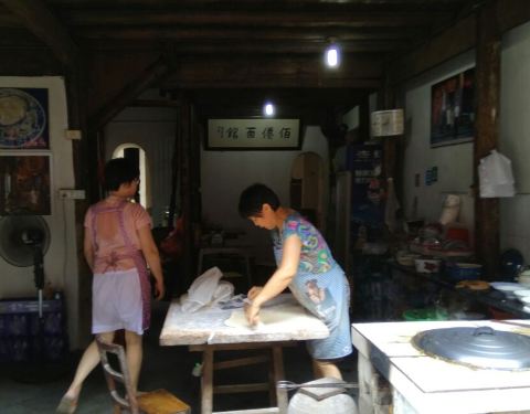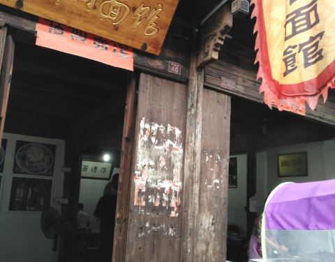 在松阳老街上,号称是老字号。手擀的面条确实挺筋道,酒糟大肠味道也还不错,推荐。
