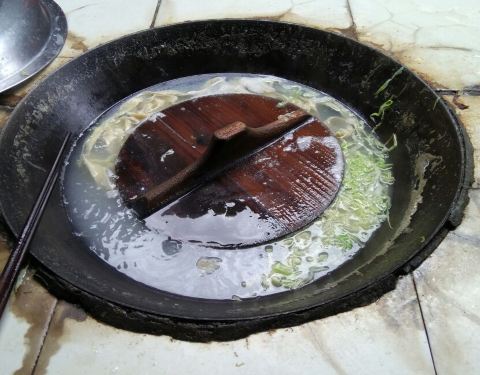 松阳县城老街上的佰仙面馆。老板说他家上过电视,推荐大肠面加大肉,还特意拿了自家的油渣儿给我。这面的筋道劲儿绝对是北方风骨。味道没吃出什么七日留香。结账出来瞅见大锅里浮着小锅盖,便问老板娘为啥用这么小的锅盖,答案直接逗乐我,“这样我能看到开没开锅”。