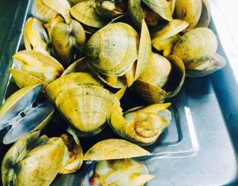 和叔叔们第一次来这家烧烤店,给我们推荐了她们的特色汽泡鱼,辣炒花蛤,牛羊肉,肉筋都特别的爽口
