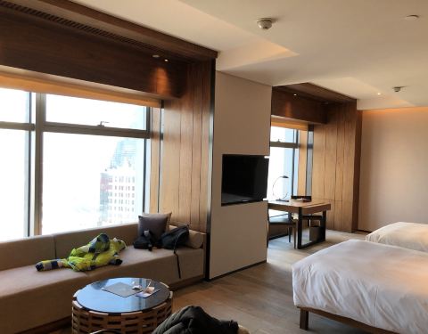 优点是酒店房间够大,视野很开阔,租车服务也很方便,不足是前台服务人员态度一般,换乘电梯麻烦但绝对可以理解。整体入住感觉还不错,有提升空间。