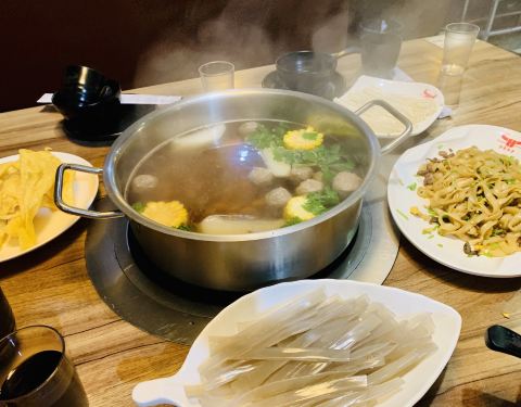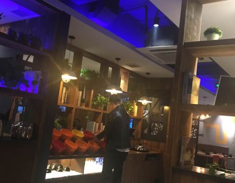 - ...找了一家火锅店的,坐进去发现这乡村音乐吵是吵得来,心脏病都要发作了……于是转战了这家潮汕火锅店