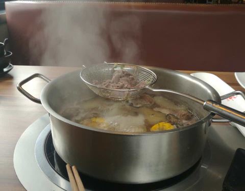 周末午餐时间过去,不需要预约,点了招牌锅、嫩牛肉和牛百叶,嫩牛和牛百叶口感鲜嫩,入汤锅涮几秒即可