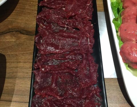 - 牛肉挺嫩的,自助火锅调料混了好几种口味加了蒜泥和花生沫,很好吃