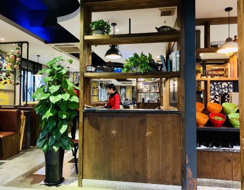 周六晚上人气比较旺,幸亏4点半左右到才有很多空位选择,到了5点半门口就开始排队了。先用了团购的四人套餐,有2个男生的话量不够,加点了一份牛肉、毛肚和若干蔬菜和一瓶啤酒。牛肉挺嫩的,自助火锅调料混了好几...周六晚上人气比较旺,幸亏4点半左右到才有很多空位选择,到了5点半门口就开始排队了。先用了团购的四人套餐,有2个男生的话量不够,加点了一份牛肉、毛肚和若干蔬菜和一瓶啤酒。牛肉挺嫩的,自助火锅调料混了好几种口味加了蒜泥和花生沫,很好吃。