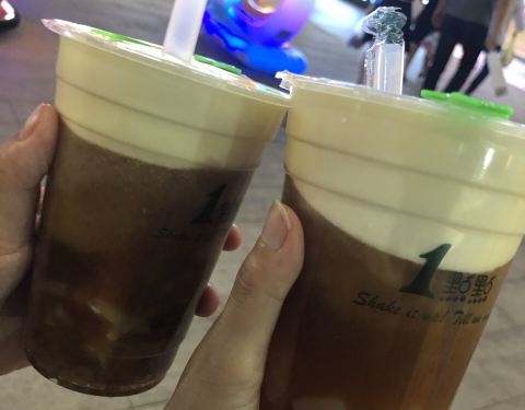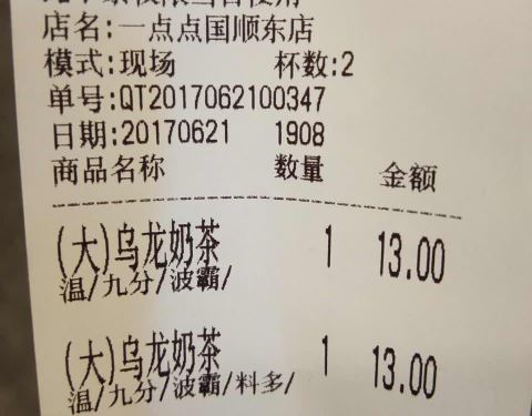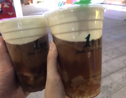 最近这家店蛮红的啦 连锁开得也蛮多额 朋友很想喝他们家 77是觉得味道都一样的 买了波霸奶绿和乌龙奶茶 加了两块钱升级了鲜奶 两杯各是十块钱 喝下来比较喜欢波霸奶绿多一点
