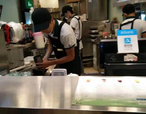 居然还是不放我们早回家 只能下楼买一点点喝 一点点依旧排队好长,な只有两个人在忙,结果他们还是...