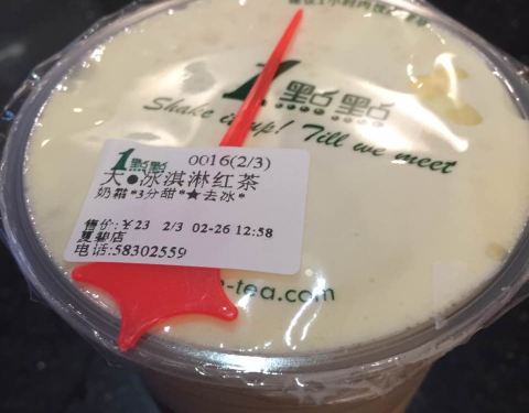哎~ 其实一点也不想下楼买这个喝~ 就是因为老板不放我们回家 二月十四日 是情人节不放我们回去~ 2月14日还是小年夜,居然还是不放我们早回家 只能下楼买一点点喝 一点点依旧排队好长,な只有两个人在忙,结果...