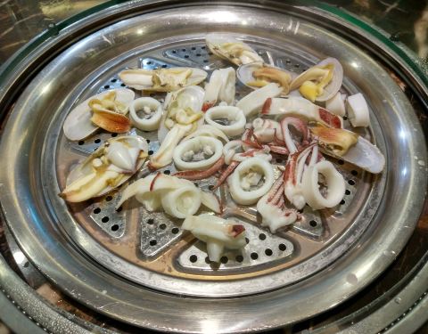 这里现在以蒸汽海鲜为主打特色,螃蟹、深海鱼、珍珠贝、鱿鱼还有芋头丸子记得点上~另外店里还有烤羊...