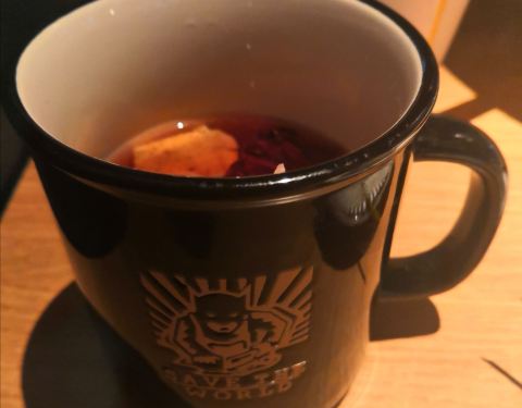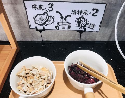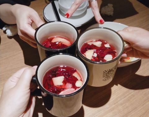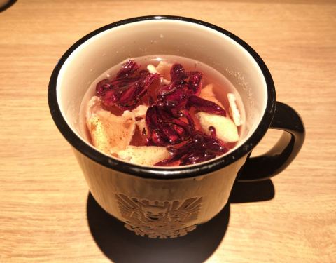 不喜欢这里的茶水,应该预先买奶茶带进去的,它的茶水有种酸酸的陈皮味道,然后又是有玫瑰花瓣,如此搭配方式让我不是很喜欢,吃得辣的时候又不能好好喝水......这里的纸巾能任拿,不过还是要一包给一包比较好,太自助反而容易浪费。