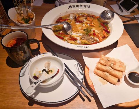 关键词:#排队久# #号称宇宙第二酸菜鱼# #茶水自助# 地理位置:客村地铁站珠影广场2楼 微点评:选择不辣还是会有点微辣,分量少,很多辣椒,不喜欢茶水 人均:60+ 朋友很喜欢吃酸菜鱼......包括上一条酸菜鱼也是...