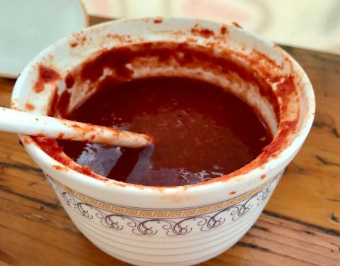 店面很大,基本每桌都坐了人,也刚好够一人一桌,自在的早餐开始啦。肉吃着很紧实,会吃辣的要来点辣油