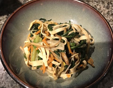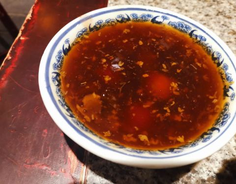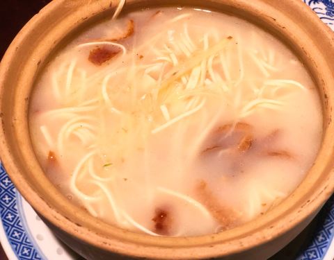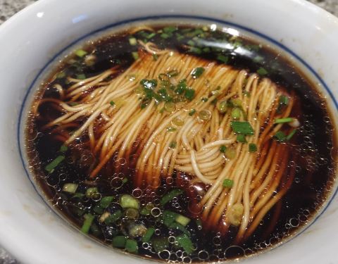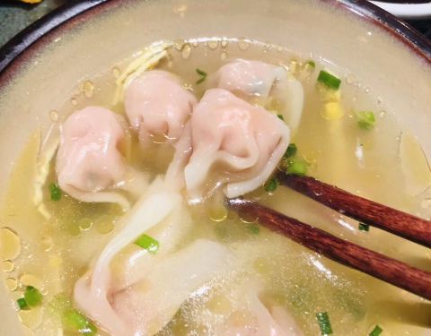 简简单单的阳春面,怎么会那么好吃?汤头很鲜,但绝不是人工添加剂的鲜,是自自然然的鲜,是不露声色的鲜,细面的柔滑,真是我们江南面食的最大特色了,软硬适中,火候正好,真想痛痛快快地吸溜出声音但大庭广众还是“矜持”了下下……我们四个人分一分,清盘,连汤带面!