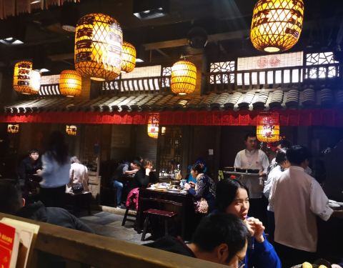位于龙之梦8楼,在中山公园这里属于性价比很高的饭店,等位很快,等位时自助喝水和吃糖。两个人只要60元就能吃撑,金玉满堂里的山药扣味超级好,还有白果,玉米,菱角也不错。鸭血麻辣开胃,阳春面,糖芋苗也都不...位于龙之梦8楼,在中山公园这里属于性价比很高的饭店,等位很快,等位时自助喝水和吃糖。两个人只要60元就能吃撑,金玉满堂里的山药扣味超级好,还有白果,玉米,菱角也不错。鸭血麻辣开胃,阳春面,糖芋苗也都不错。手机点单,付费,很便捷。环境不错,很有特色。