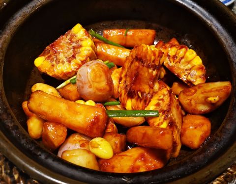 两个人只要60元就能吃撑,金玉满堂里的山药扣味超级好,还有白果,玉米,菱角也不错。环境不错,很有特色