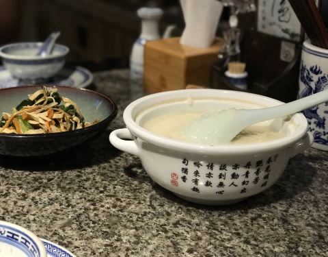 美龄粥一如既往的好喝,山药和豆浆混合着粳米,浓郁而又清香;萝卜皮有点咸了;狮子头肥而不腻,别被肥肉吓到啊;春卷居然是菇类馅的,炸得还不错;酒酿等人的时候就被我吃完了,哈哈哈哈。