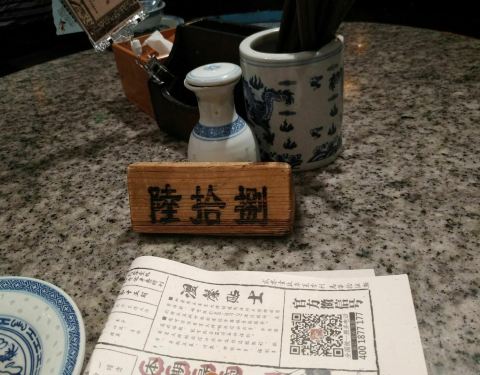 拿完号就吓得走开的人不是一两个,实在太多人排队了,还好坚持到最后了,没有想象的那么久,桌子排的比较紧凑,包包可以放在桌下的竹篓里;菜单别致,服务员的衣着打扮也是相当应景,挺有意思;免费茶水自助,杯子...